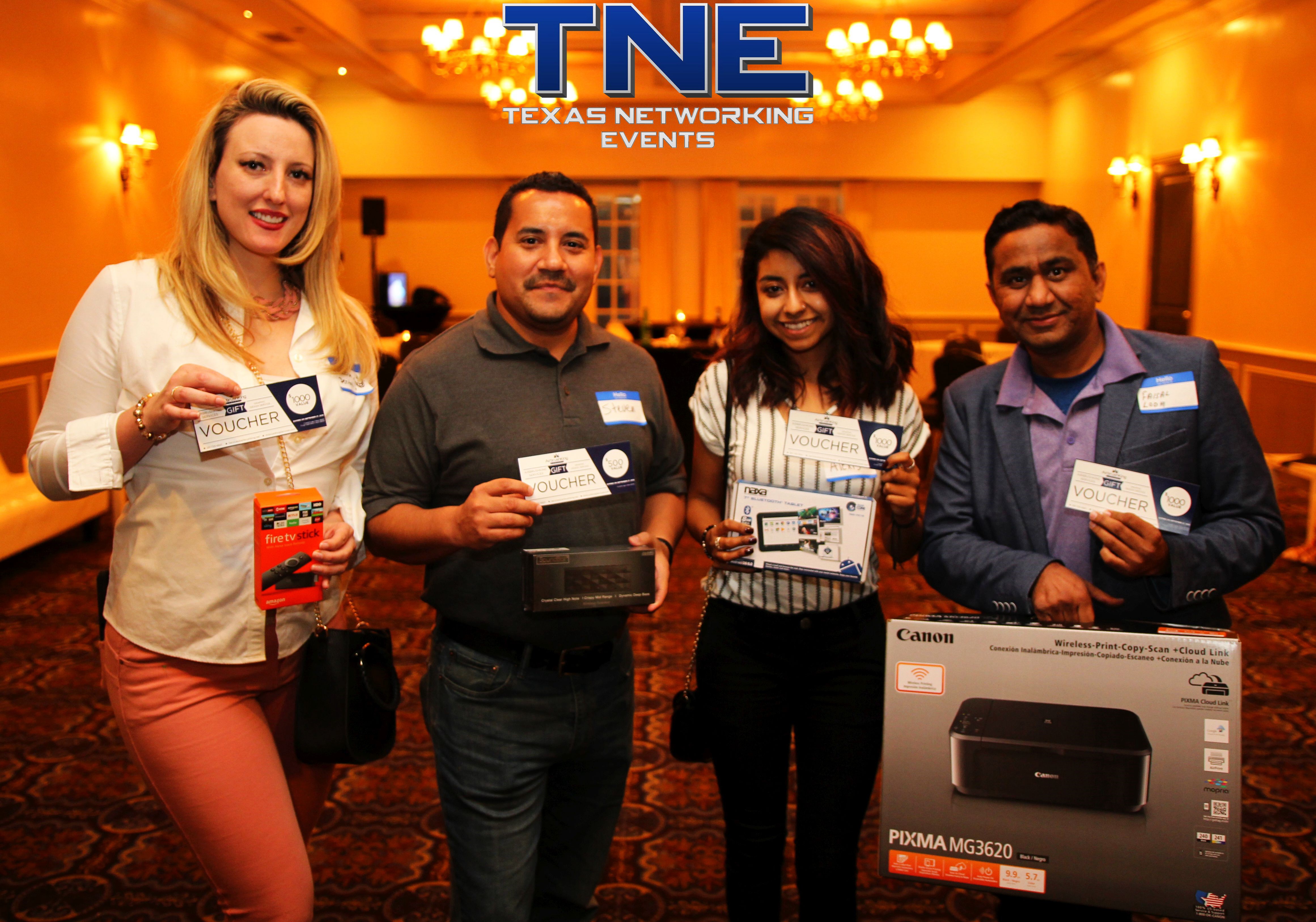 Entrepreneurs, business owners and professionals share resources and contacts that help support each other’s business goals. Texas Networking Events also offers a raffle drawing at the end of the event featuring prizes that will help start or grow your business. For the first 10 guests that enter the venue will each receive a special gift.